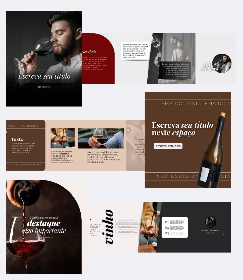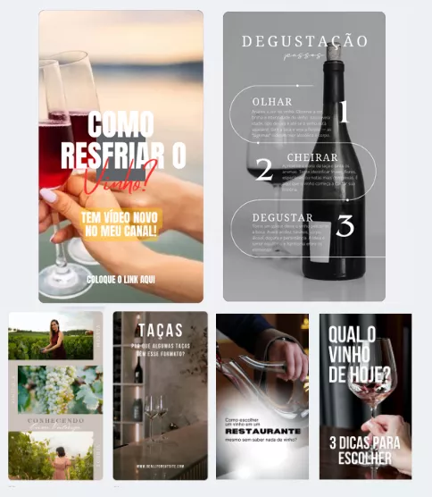 Artes prontas e sofisticadas para Instagram para você usar no seu perfil ou mesmo atender clientes da área de vinho.